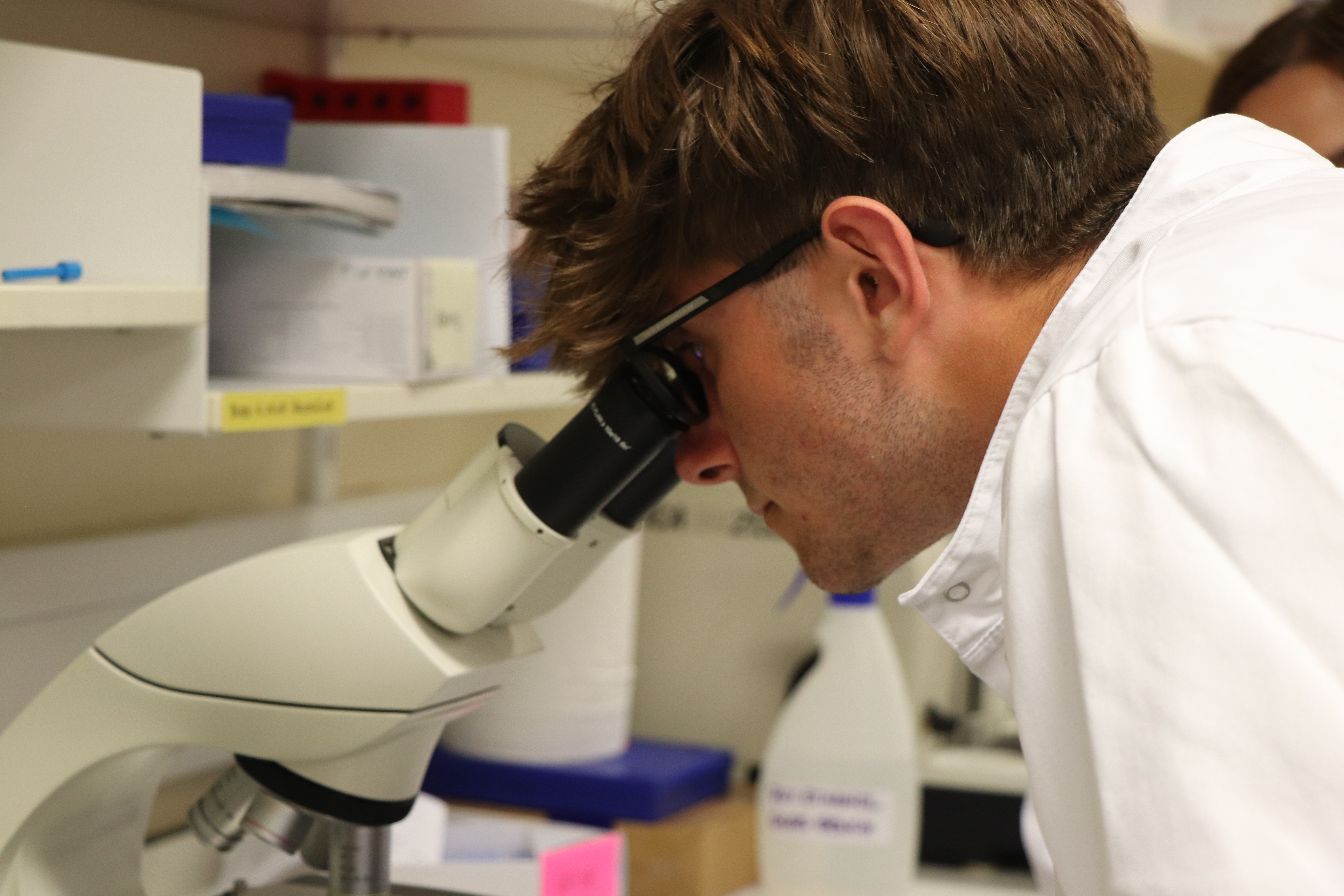The afternoon began with presentations introducing transplantation research and how QUOD supports this by supplying bespoke sample sets to scientists. Students watched our video following the journey of a QUOD box — from donor consent and sample collection to processing and storage in the biobank, according to regulations set out in the Human Tissue Act 2004. In the laboratory, Dr Jenny Collins, QUOD Research and Technical Assistant, demonstrated how tissue samples were processed for long-term storage as formalin-fixed paraffin-embedded blocks, and how sections of the tissue are cut using a microtome and slides are prepared to be used for histology.