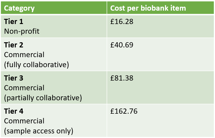 The QUOD Programme is required to recover some of the cost associated with the running of the biobank. QUOD aims to ensure that material is provided to research projects at the lowest possible cost to researchers.